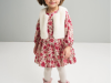 Abito per bambina realizzato in twill viscosa con fantasia a fiori. Lunghezza sopra al ginocchio. In abbinamento gilet in caldo e morbido tessuto. Il prodotto non contiene materiali di derivazione animale. Animal free è un marchio di LAV www.animalfree.info