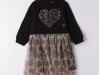 Abito per bambina Sarabanda realizzato in felpa invernale e tulle. La parte sopra è arricchita da cuore di strass. La gonna è foderata in satin. Lunghezza al ginocchio