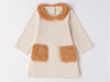 Abito per bimba Minibanda realizzato in felpa invernale di cotone stretch, felpata internamente, Tasche e colletto in morbido tessuto. Apertura dietro con bottoni a pressione. Lunghezza sopra al ginocchio.