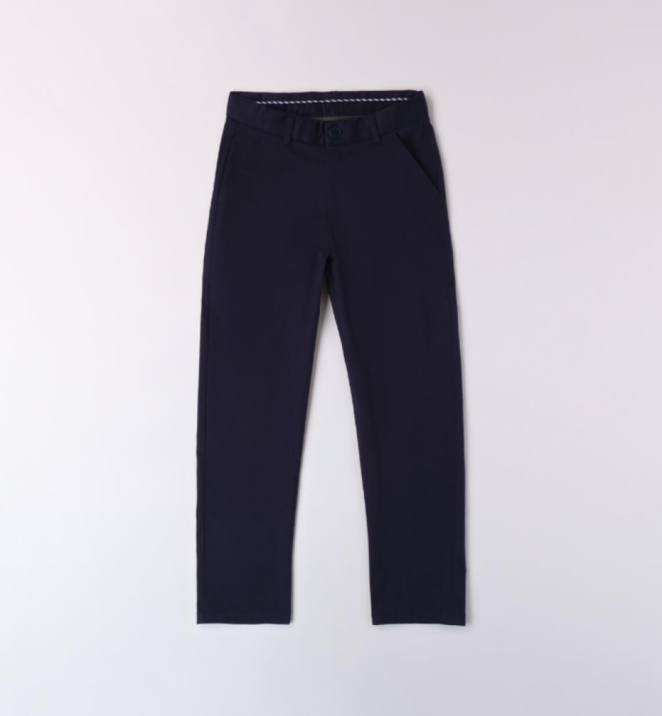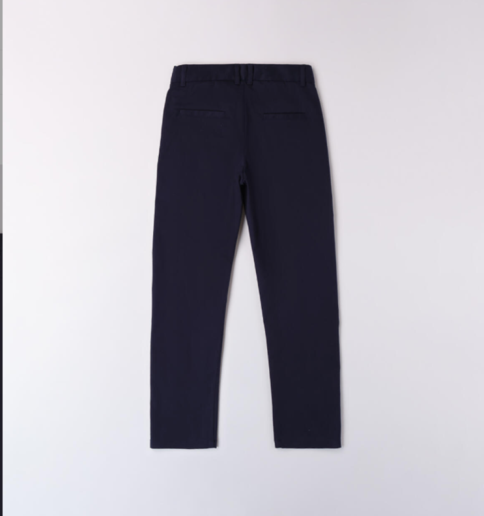 Pantalone in punto Milano. Il modello presenta apertura con zip e bottone, tasche laterali e fantasia tinta unita. Vestibilità regular.