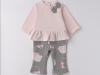 Completo Minibanda con felpa in caldo cotone con fiocco e leggings a trombetta con orsetti