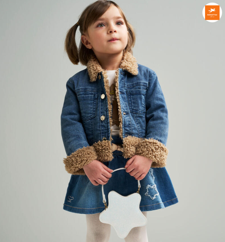 Giubbotto bambina Sarabanda realizzato in denim stretch con dettagli teddy e fodera trapuntata. Imbottitura in ovatta. Ideale per l’attacco stagione. Il prodotto non contiene materiali di derivazione animale. Animal free è un marchio di LAV www.animalfree.info